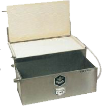 Ce laminoir permet de ramener les feuilles de cire ou les bandes de cire à l'épaisseur nécessaire pour pouvoir ensuite les gaufrer avec un gaufrier (par exemple réf: 00CI24)