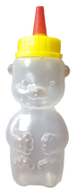 Nounours verseur pour miel, en PET. Incassable, transparent équipé d'un bouchon verseur. Les bouchons sont à visser dessus.
