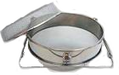 Passoire pour filter votre miel double en inox. Système de coulisse, Diamètre du tamis: 225mm, adaptable sur une cuve ou seau jusqu'au diamètre: 350mm.