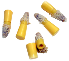 Les barrettes plastiques se placent dans une fente que l'on fait dans les barrettes d'élevage en bois classiques, les petits plots avec cuvettes contenant les larves sont alors coiffées d'une cupule percée.