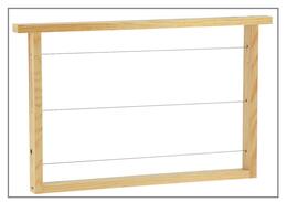 - d'une rainure sur le dessus de la tête de cadre et d'une rainure sur le dessous du bas de cadre (passage du fil) pour pouvoir gratter la propolis avec le lève-cadre sans casser le fil.