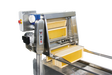 Les seules différences sont l'absence de l'alimentation automatique des cadres qui sont donc introduits dans la machine progressivement à travers la goulotte de descente et la structure porteuse qui n'est pas posée au sol mais qui est placée sur un chariot pour machine à désoperculer ou sur des supports adaptés (Notre support Réf: 00IN16).