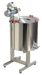 Mélangeur « MINIMEL ». C'est un petit mélangeur à miel à simple cuve d'une contenance de 100 kg , Ø 470 mm - H 500 mm, robinet en inox Ø 40, bord supérieur arrondi pour une robustesse axiale optimale. L'hélice en inox Ø 260 mm est montée sur un axe incliné sur lequel elle est réglable en hauteur, et est mise en rotation par un motoréducteur monophasé de 370 W à 50 tr/min. La structure porteuse est réalisée en tube d'acier inox. Le couvercle est équipé d'un verrouillage de sécurité de sorte que la machine ne puisse pas être ouverte quand elle est en marche. Cette simple petite machine permet de produire du miel crémeux en assez peu de temps. Poids : 34 kg.